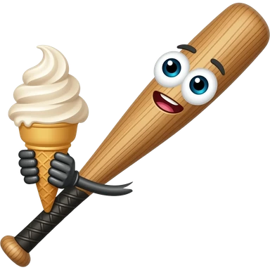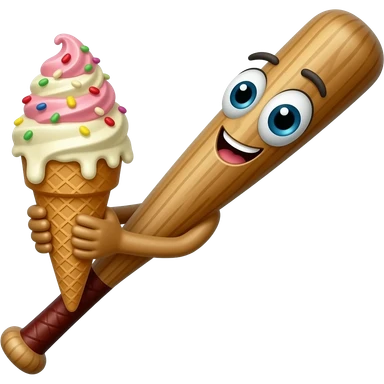 brown baseball bat with eyes mouth eating icecream funny emoji