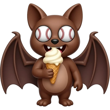 brown bat with eyes baseball mouth with bat eating icecream funny emoji