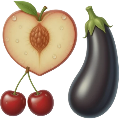 hartstochelijke perzik, kersjes en aubergine - voor sexting emoji
