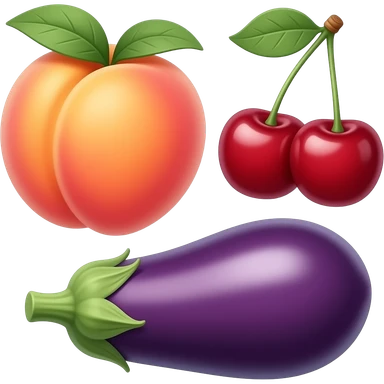 hartstochelijke perzik, kersjes en aubergine - voor sexting, maak je het nog iets geiler en werkelijker emoji