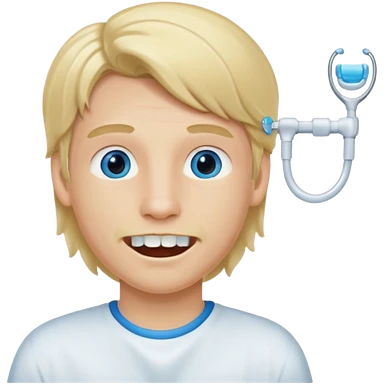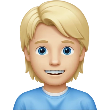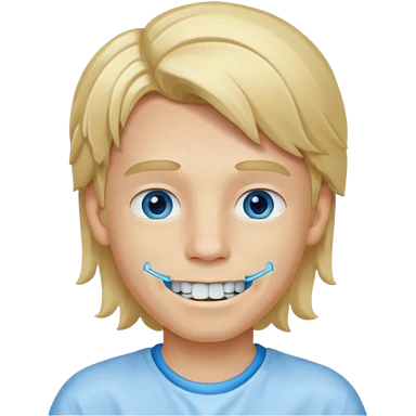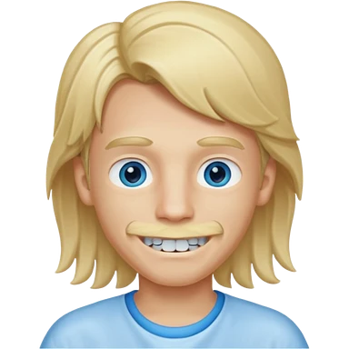Blond boy with long hair in tail of low blue eyes and dental appliance emoji