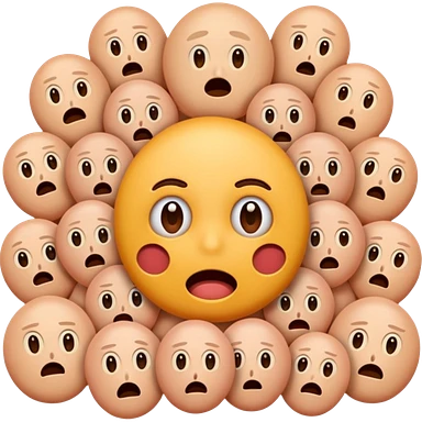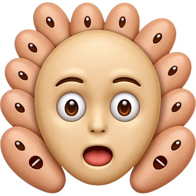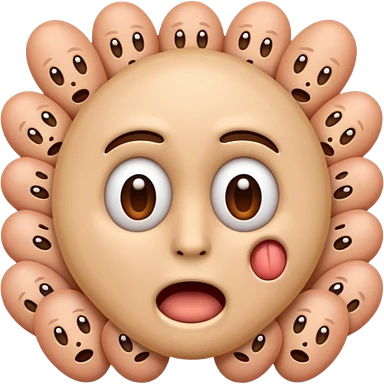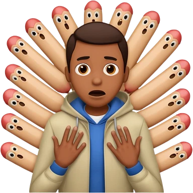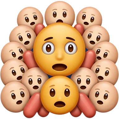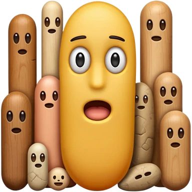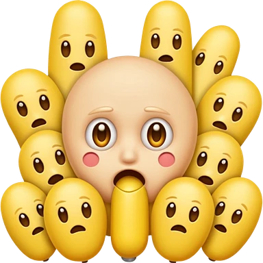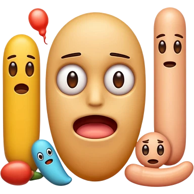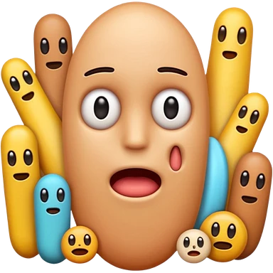 I want an emoji with a bunch of phallic-like objects surrounding them, and the emoji’s face should show fear. The main emoji should look more like a standard emoji face, and the objects around him/her don’t need to have faces too. They should just be a bunch of penis-shaped things emoji