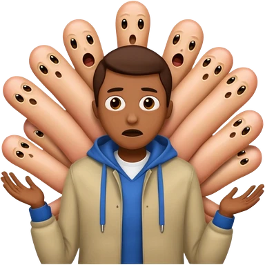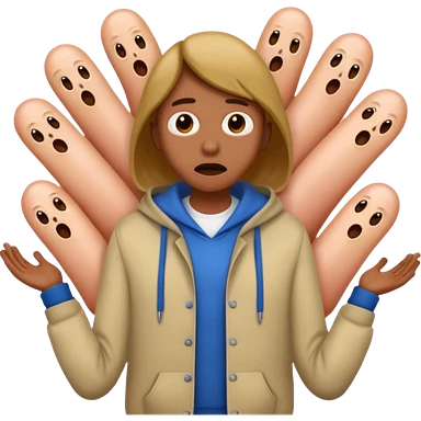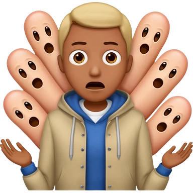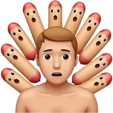 I want the main person to be an emoji with a bunch of phallic-like objects surrounding them, and their face should show fear of them emoji