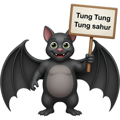 Woden bat holding a sign that says “Tung Tung Tung sahur” emoji