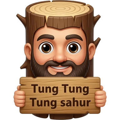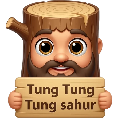Woden log holding a sign that says “Tung Tung Tung sahur” emoji