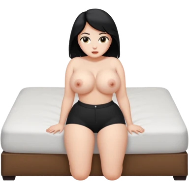 Thick White girl with black hair and really huge tits and really huge ass bent over on bed emoji