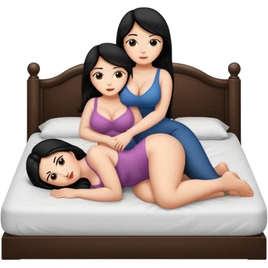 Thick Dark haired girl with big butt and big breasts sitting on a white male with black hair laying on bed emoji