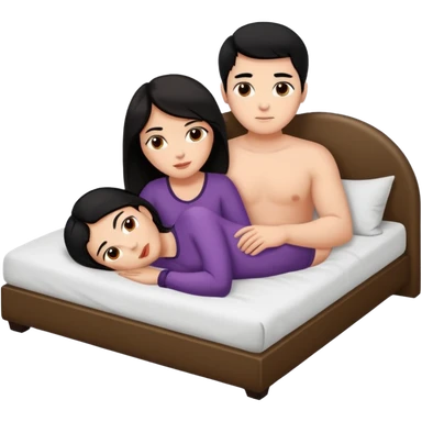 Thick Dark haired girl with big butt and big breasts laying in bed naked next to a white male with black hair and big penis emoji