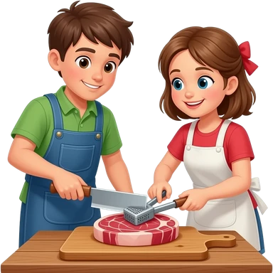 a boy and a girl beat the meat steak emoji