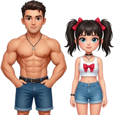 a big strong boy with a goth mommy girl tanning in the hot sun emoji