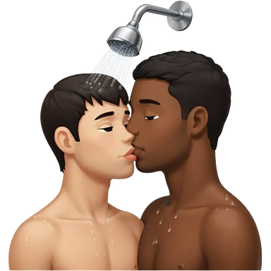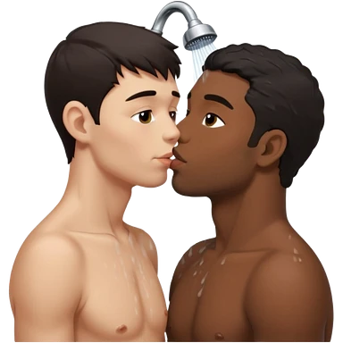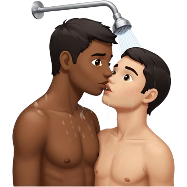 Dark hair adult White male in the shower naked kissing on the lips adult black male full body view emoji