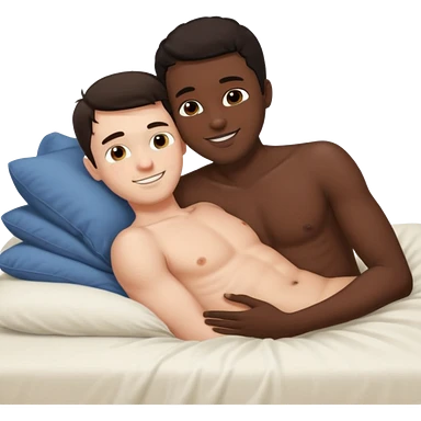 White male laying back on the bed naked kissing black male emoji