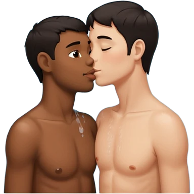 Dark hair adult White male in the shower naked kissing on the lips adult black male emoji