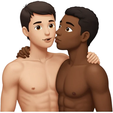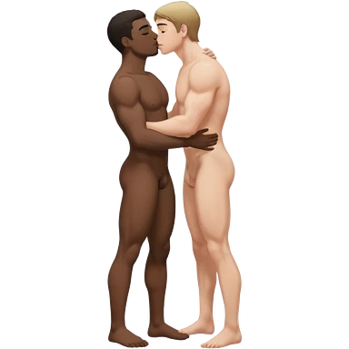 adult black male short curly hair kissing white male dark hair, touching penis naked, full body view emoji