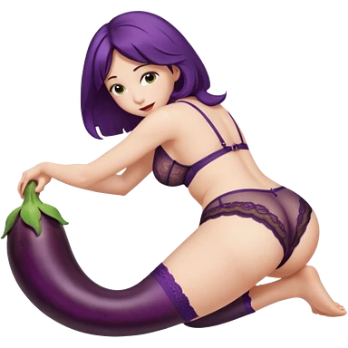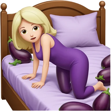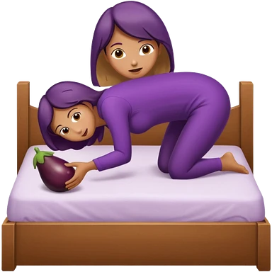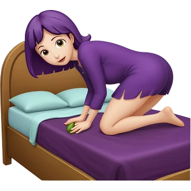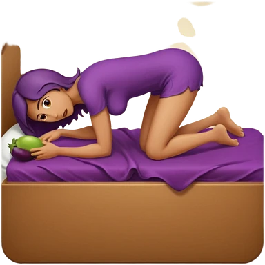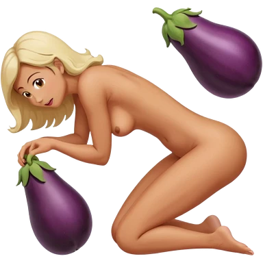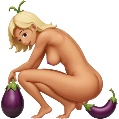 Woman nude bending over bed showing eggplant coming out of vagina emoji