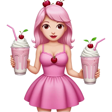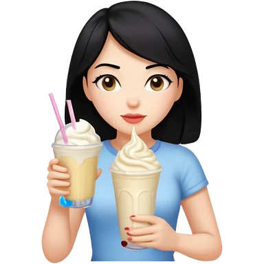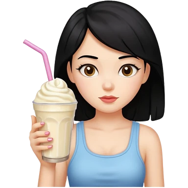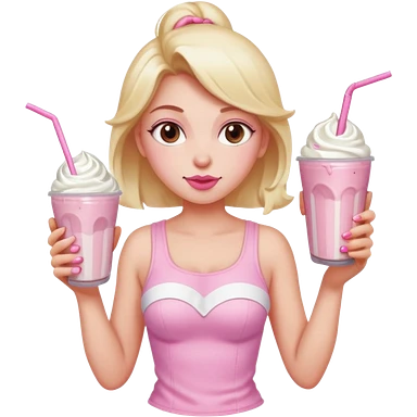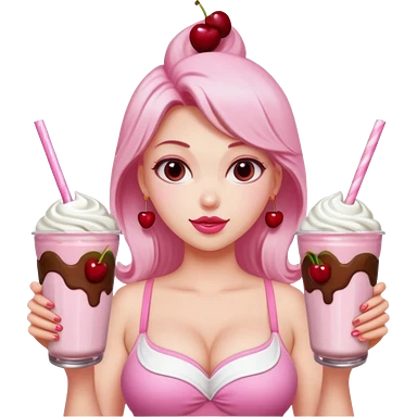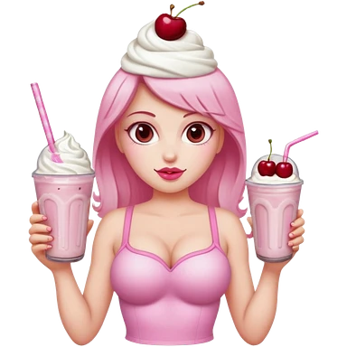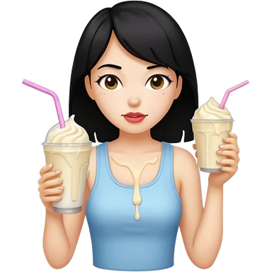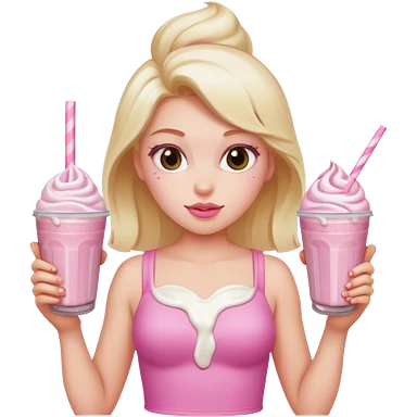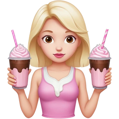 A girl with boobs as milkshakes put the milkshake on her boobs emoji