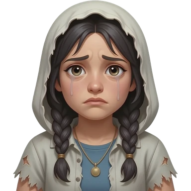 거지여서 슬프고 괴로운 젊은 여성 옷도 거지처럼 emoji