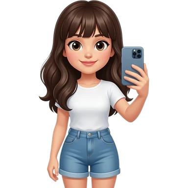 거울 셀카 찍는 예쁜 앞머리 긴머리 여성 emoji