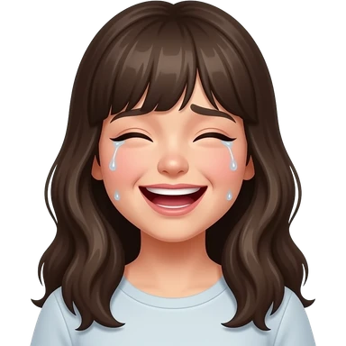 행복해서 눈물 흘리는 앞머리 있는 긴머리 여성 emoji