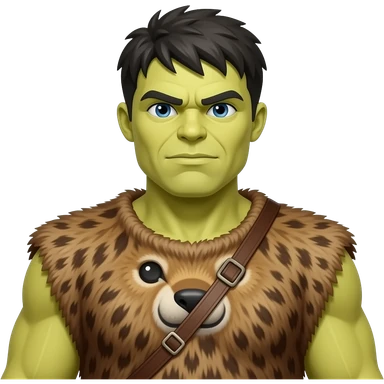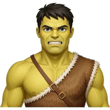 a Hulk wearing ancient animal skin cloth, half body, icon, yellow skin emoji