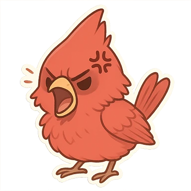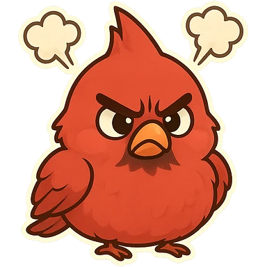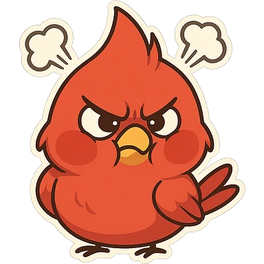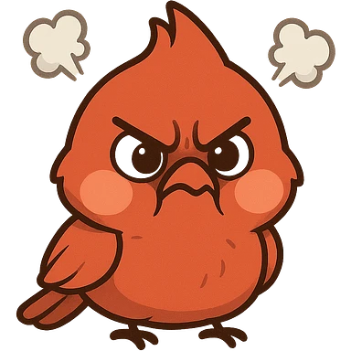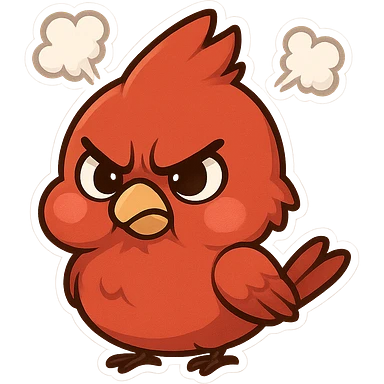 Chibi red male cardinal frowning with puffed cheeks and furrowed brows, steam puffs above head, angry but cute emoji. emoji