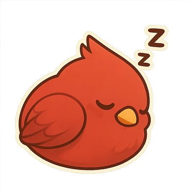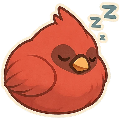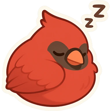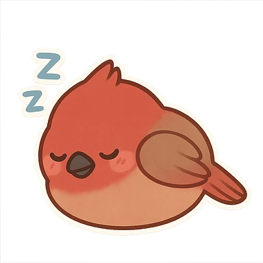 chick cardinal sleeping curled up, Z bubbles, cozy rounded shape emoji