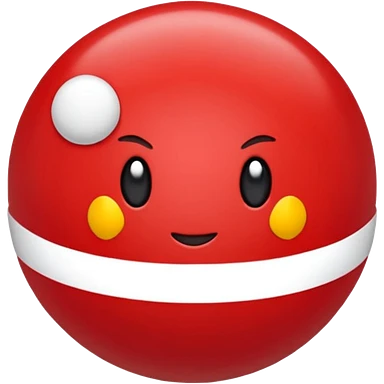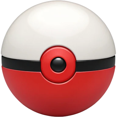 🔴 Parte de cima: vermelha, lisa e brilhante ⚪ Parte de baixo: branca ➖ No meio: uma faixa preta horizontal que divide a bola ao meio ⚪ No centro da faixa: um botão redondo branco (ou cinza claro), que parece um pequeno círculo Formato: ⚪ Bola perfeitamente redonda emoji