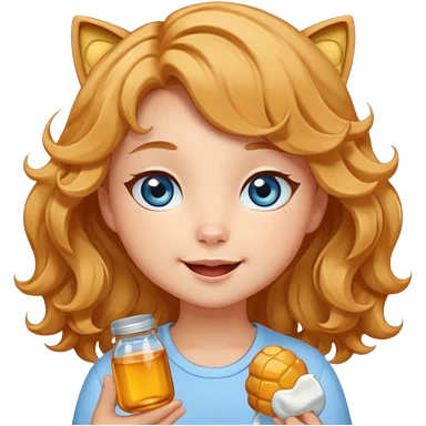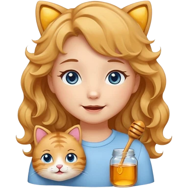 Создай яркий мультяшный телеграм‑стикер‑пак в духе Lady Cat: динамичный, кавайный и с милыми эмоциями  . Персонаж — молодая девушка с медовыми волнистыми волосами, серо‑голубыми глазами и нежной улыбкой; каждый стикер передаёт разные чувства, сохраняя романтичность и игривость. emoji