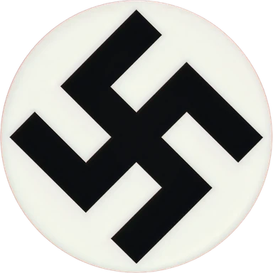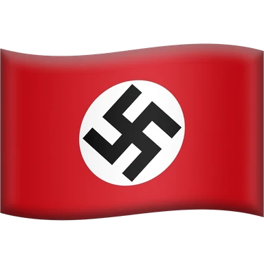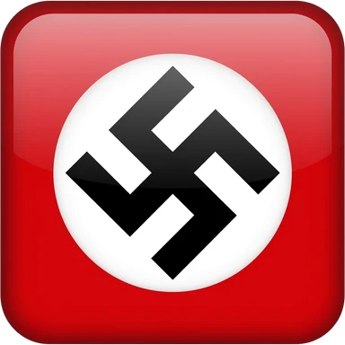 A solid red background, with a large white circle centered on the flag. Inside the circle is a black swastika rotated 45 degrees (diagonally), with its arms bent at right angles. emoji