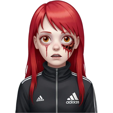 Crie um emoji de uma menina zumbi com o cabelo vermelho longo com uma franja reta casaco de gola alta da adidas emoji