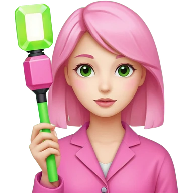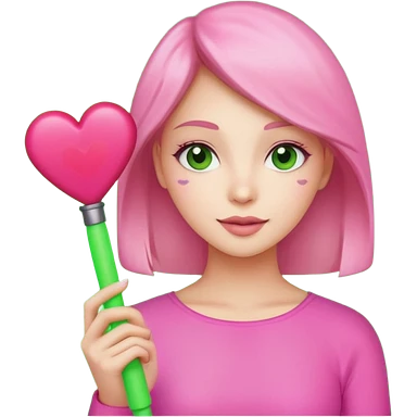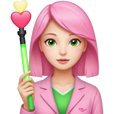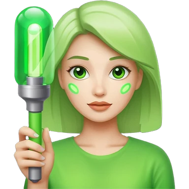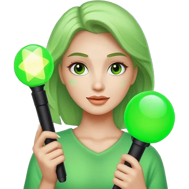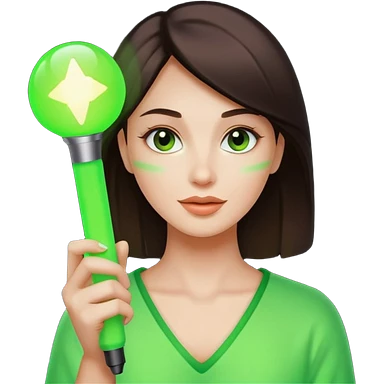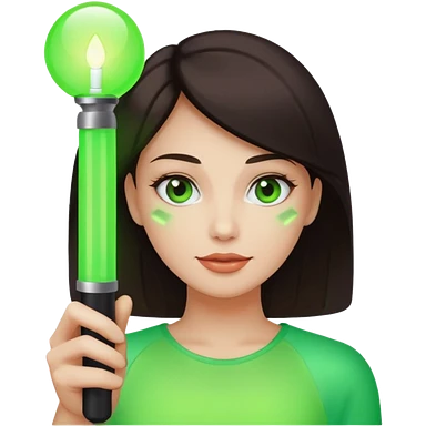 A pretty woman holding a green light stick emoji