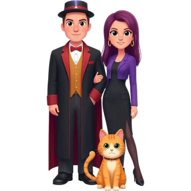 magician couple and their pet cat emoji