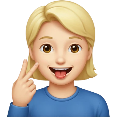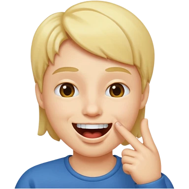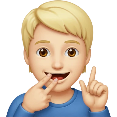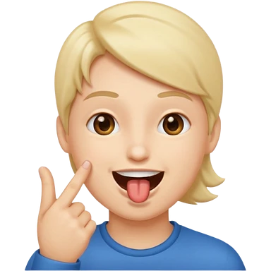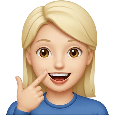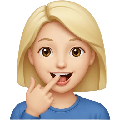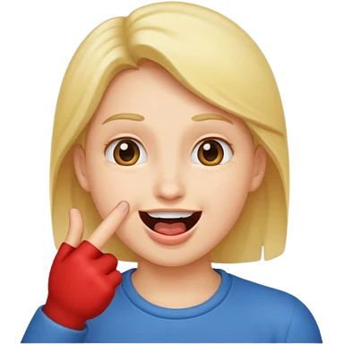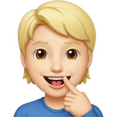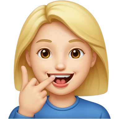 A smiling face with open mouth and taking is finger inside mouth emoji