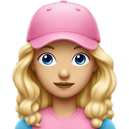 Blonde wavy hair girl blue eyes wearing pink ballcap emoji