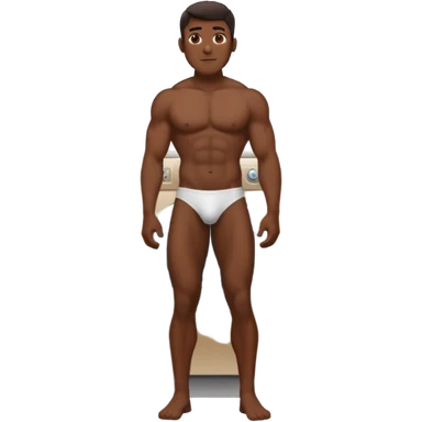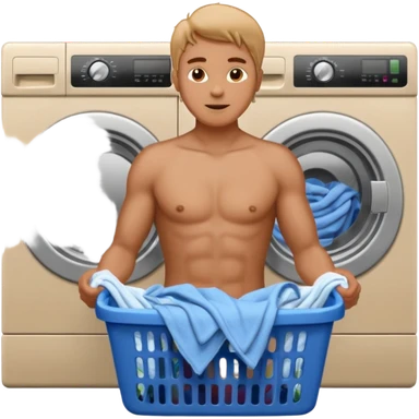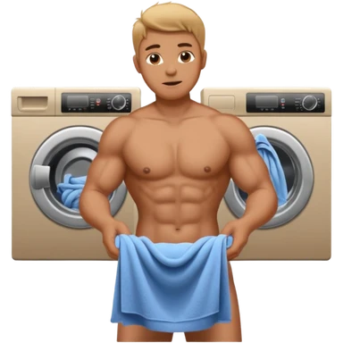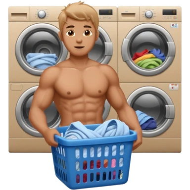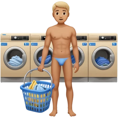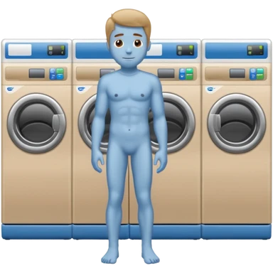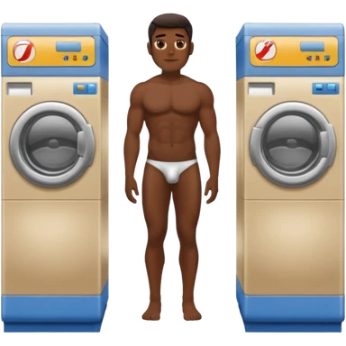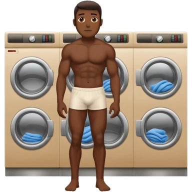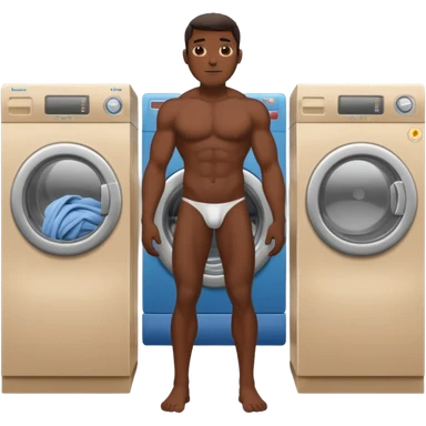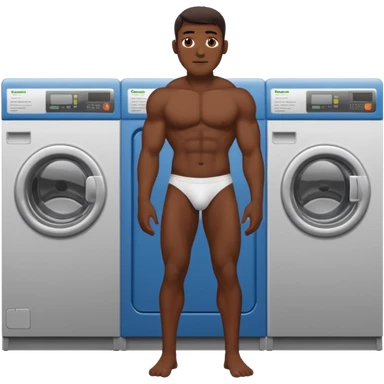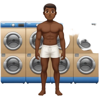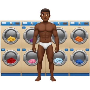 full view of a fully naked muscular dark skin man in a laundromat emoji