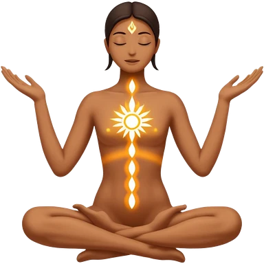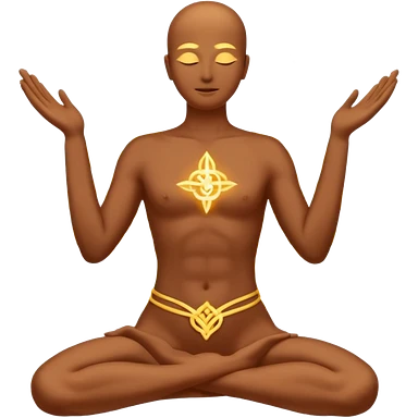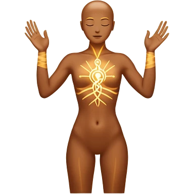 A minimal emoji-style illustration representing "KAR" (action and process). A glowing human silhouette in motion, hands shaping energy, symbolizing effort, discipline, and creation in progress. No face details, no realism. Sacred energy lines flowing through the body, emoji