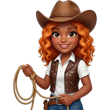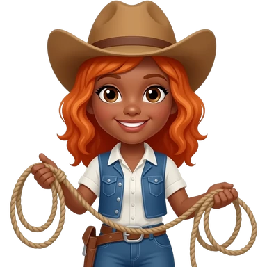 black girl ginger hair cowgirl with lassoo emoji