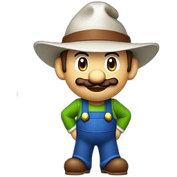 a traditional october fest visitor in super mario style. With a grean hat, blue and white shirt and brown leather pants. emoji