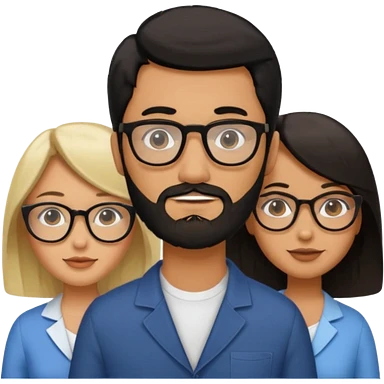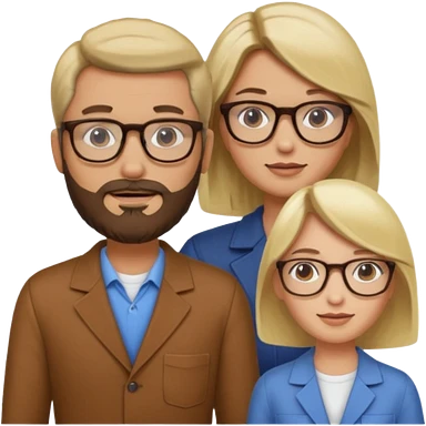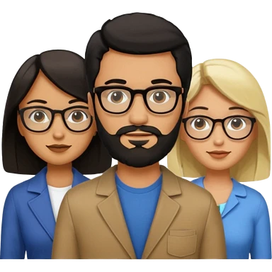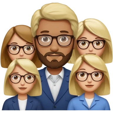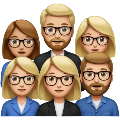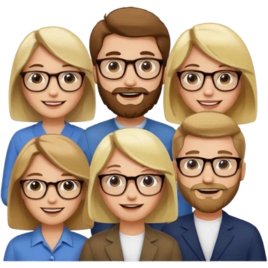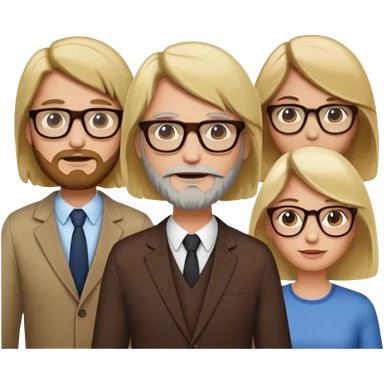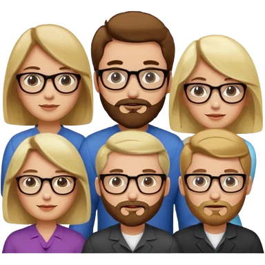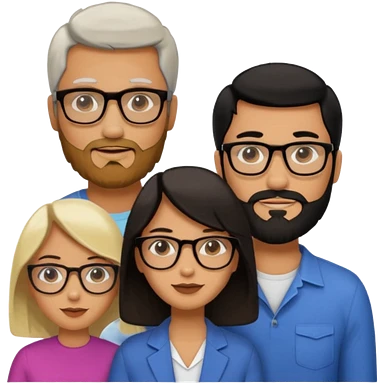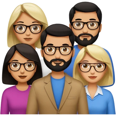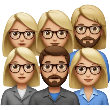A man with hair and glasses and a woman with long brown hair and a man with a beard and a woman with a blonde bob emoji