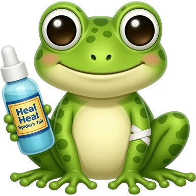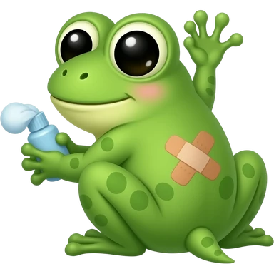cute chibi frog with a bandaid on his butt holding vapor rub "Sana sana colita de arana" emoji