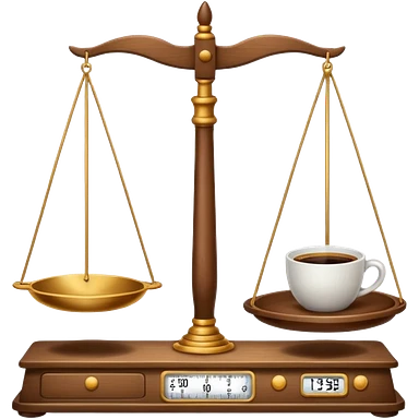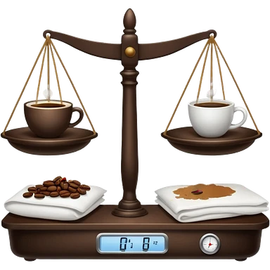 Simple balance scale with coffee on the strong side and sleep on the weak side emoji