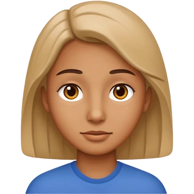 brown hair in a low pony tail with brown eyes girl blue shirt emoji