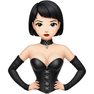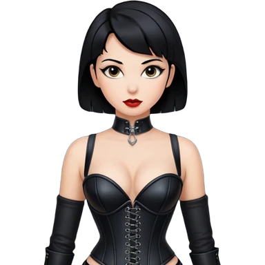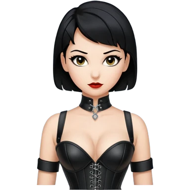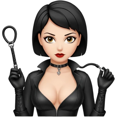 Woman in black leather very short hair cleavage dominatrix emoji