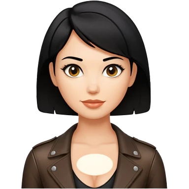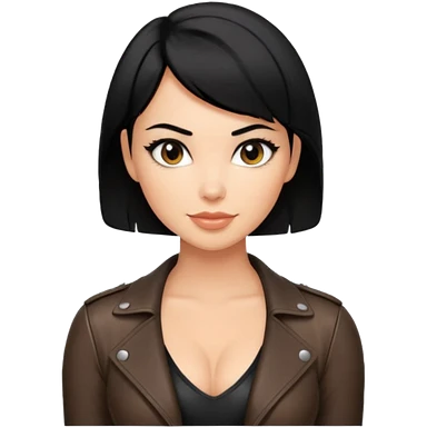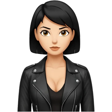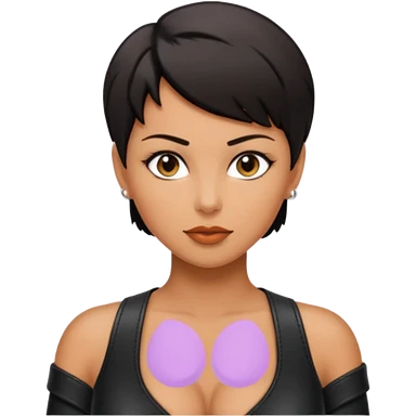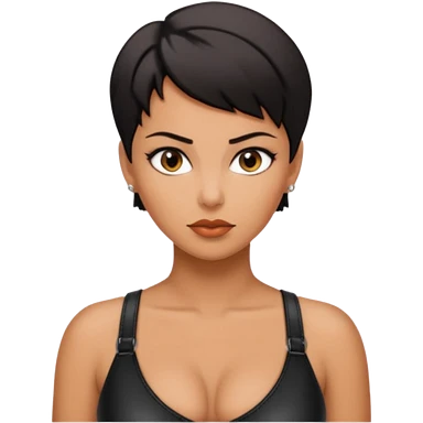 Woman in black leather very short hair cleavage dom emoji