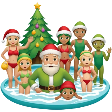 family christmas outing to waterpark with 6 grandchildren, santa and buddy the elf emoji