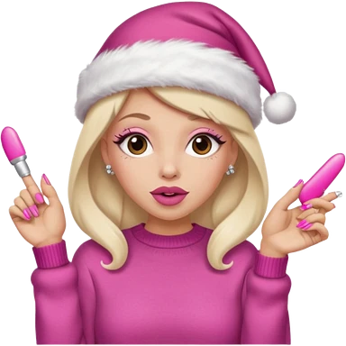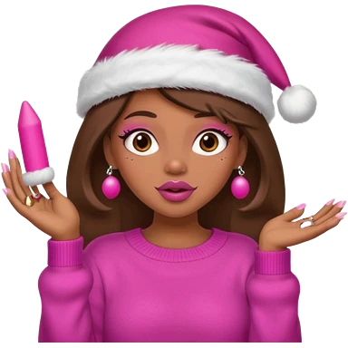 Sassy, cunty, girly Santa emoji with big lips, fake nails, pink sweater, and a pink santa hat. emoji