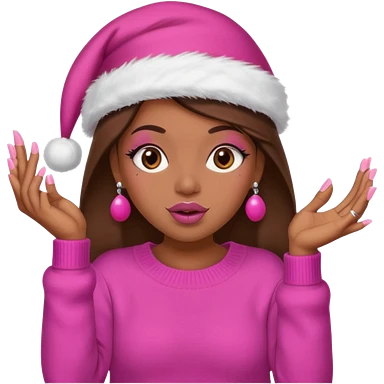 Sassy, cunty, girly Santa emoji with big lips, long nails, pink sweater, and a pink santa hat. emoji