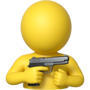 Yellow round head with ought arms holding a gun with just hands and no body emoji