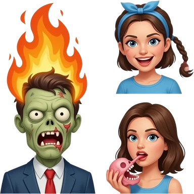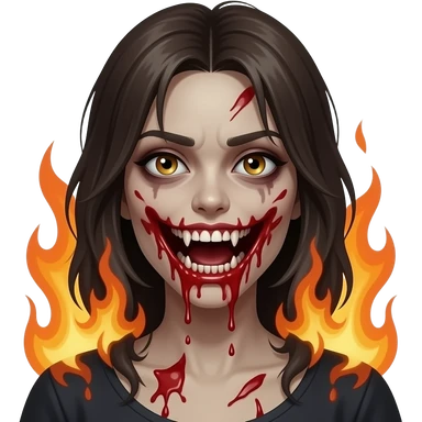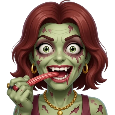crazy zombie lady on fire eating a brain with chopsticks emoji