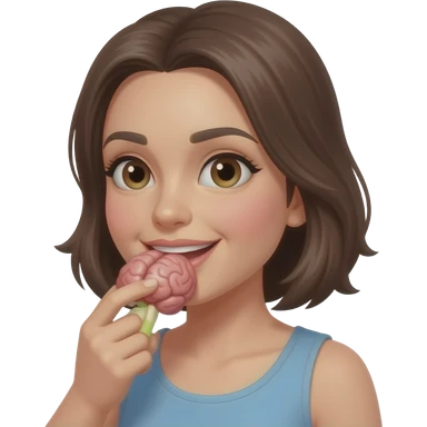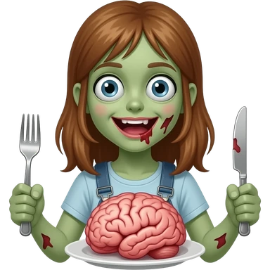 Girl zombiee eating his brains no smile bigger brain with fork and knife emoji